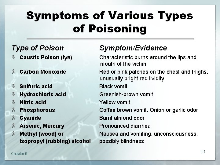 Source: https://slidetodoc.com/chapter-6-toxicology-poisons-and-alcohol-all-substances/
